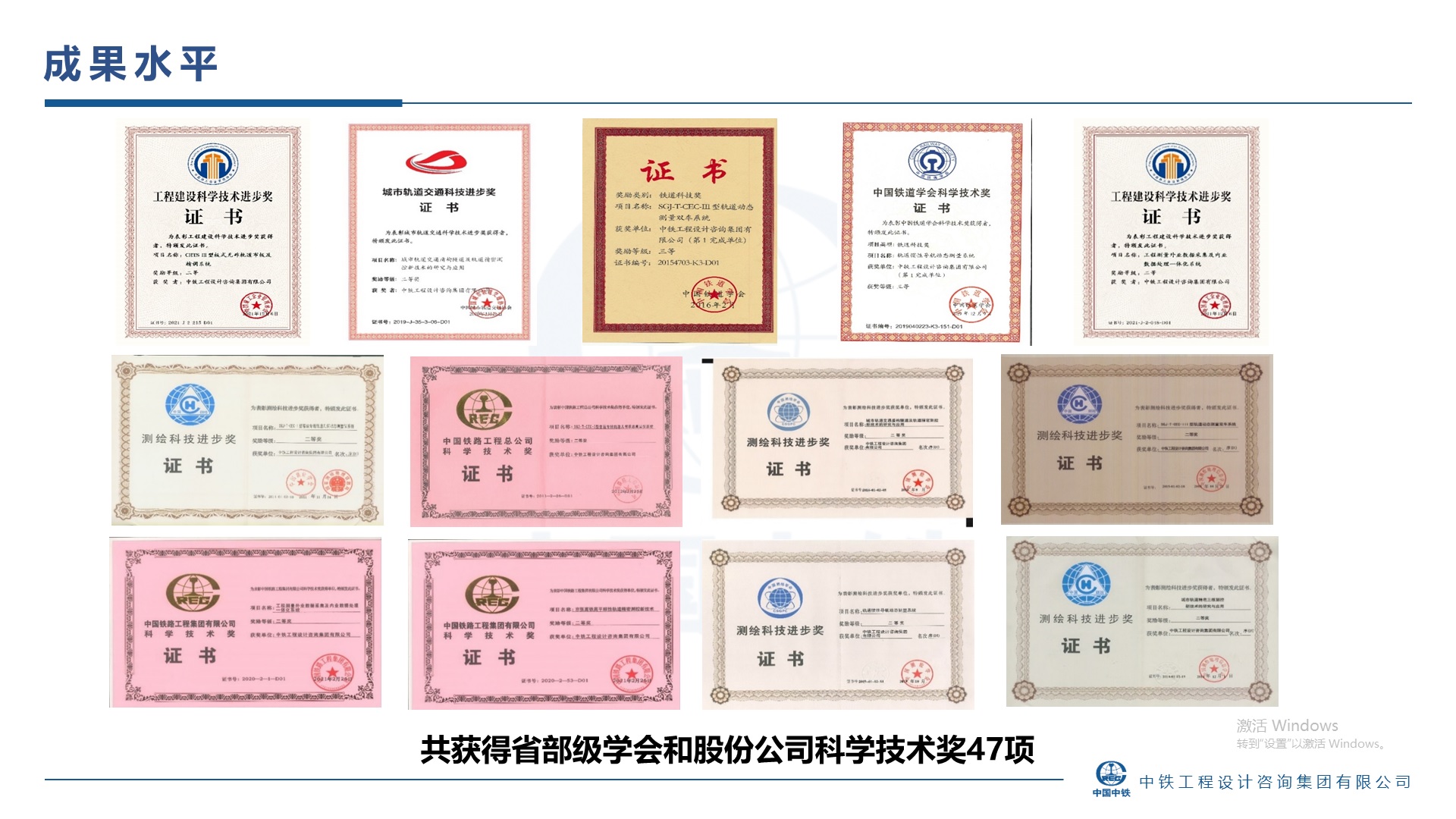 【獲獎及標(biāo)準(zhǔn)】多年來航遙院先后獲得各類科學(xué)技術(shù)獎28項,優(yōu)秀工程獎74項,優(yōu)秀工程軟件獎11項。主參編了《鐵路工程攝影測量規(guī)范》、《高速鐵路工程測量規(guī)范》、《鐵路工程衛(wèi)星定位與遙感測量技術(shù)規(guī)程》、《鐵路用地 第2部分:圖式》、《城市軌道交通工程測量規(guī)范》、《跨座式單軌交通工程測量標(biāo)準(zhǔn)》、《改建鐵路工程測量規(guī)范》、《鐵路工程衛(wèi)星定位測量規(guī)范》等國家和行業(yè)規(guī)范。