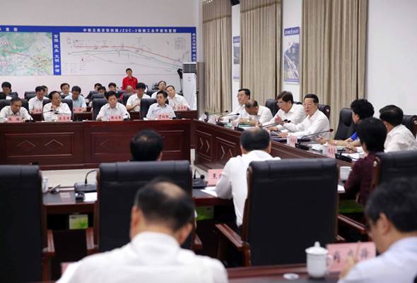 張高麗主持召開座談會,聽取京張鐵路、延崇公路的規劃建設進展情況匯報,中鐵咨詢總經理李壽兵參加會議。(圖片來自新華社)