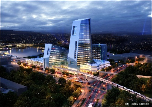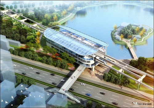 平行換乘、綜合體一體開發(fā)的輕型跨座式單軌交通效果圖