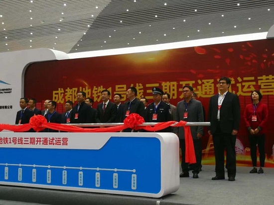 3月18日上午,中鐵設計集團總經理王洪宇,副總經理辛兵一行赴成都參加 “連接天府新區,共繪南拓華章——成都地鐵1號線三期開通試運營儀式”。通車儀式在西博城站站廳舉行,成都市政府建委、交委、成都軌道集團以及地鐵各參建單位代表和媒體等300多人參加了通車儀式。中鐵設計集團公司總經理王洪宇代表勘察設計總承包單位在主席臺剪彩,副總經理辛兵帶領設計方隊參與了檢閱,共同分享這份成功的榮耀。