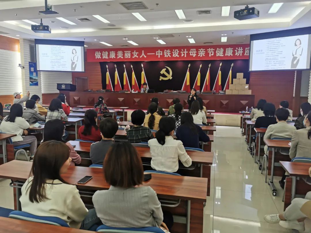 2021年5月8日,在母親節到來前夕,中鐵設計女工委在1301會議室舉辦了“做健康美麗女人”的健康講座,集團本部80余名女職工到場聆聽,異地分公司通過視頻參加。