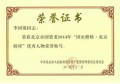 中鐵咨詢橋梁院院長、黨委書記李國強同志榮獲北京市國資委2014年“國企楷模?北京榜樣”優秀人物榮譽稱號