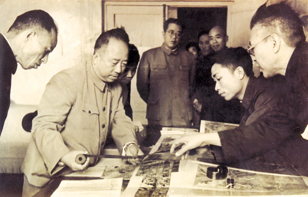 首任鐵道部部長(zhǎng)滕代遠(yuǎn)、副部長(zhǎng)武竟天視察鐵路航測(cè)工作(1957年9月27日)