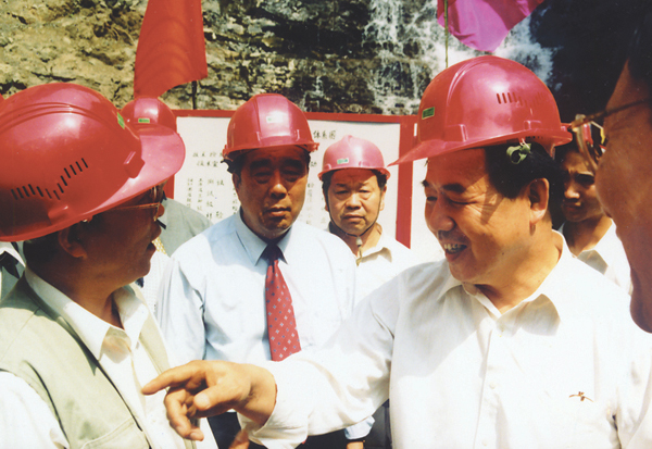 原鐵道部部長(zhǎng)傅志寰視察內(nèi)昆鐵路時(shí)同公司監(jiān)理人員親切交談