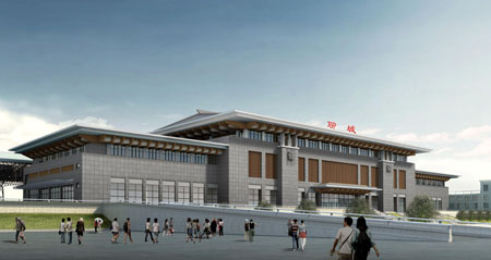 聊城地處經濟發達的山東省,居魯西,臨河南、河北,京九鐵路、邯濟鐵路在此交匯。聊城站設計旅客最高聚集人數2500人,為中型旅客車站。站房總建筑面積14950㎡,南北長164.8m,東西寬43.4m,共三層,總高度28.9m。建筑造型取意于聊城的象征——光岳樓,左右對稱的布局、精細的雙重屋檐、厚重的墻體、古樸的色彩,使得整個站房雄渾、穩重,并富有傳統韻味,體現了 “運河古都”聊城的城市特色。