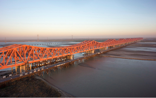新建鄭州至焦作城際鐵路鄭州黃河大橋--國(guó)內(nèi)首次采用多聯(lián)2×100連續(xù)鋼桁梁跨越大江大河大橋